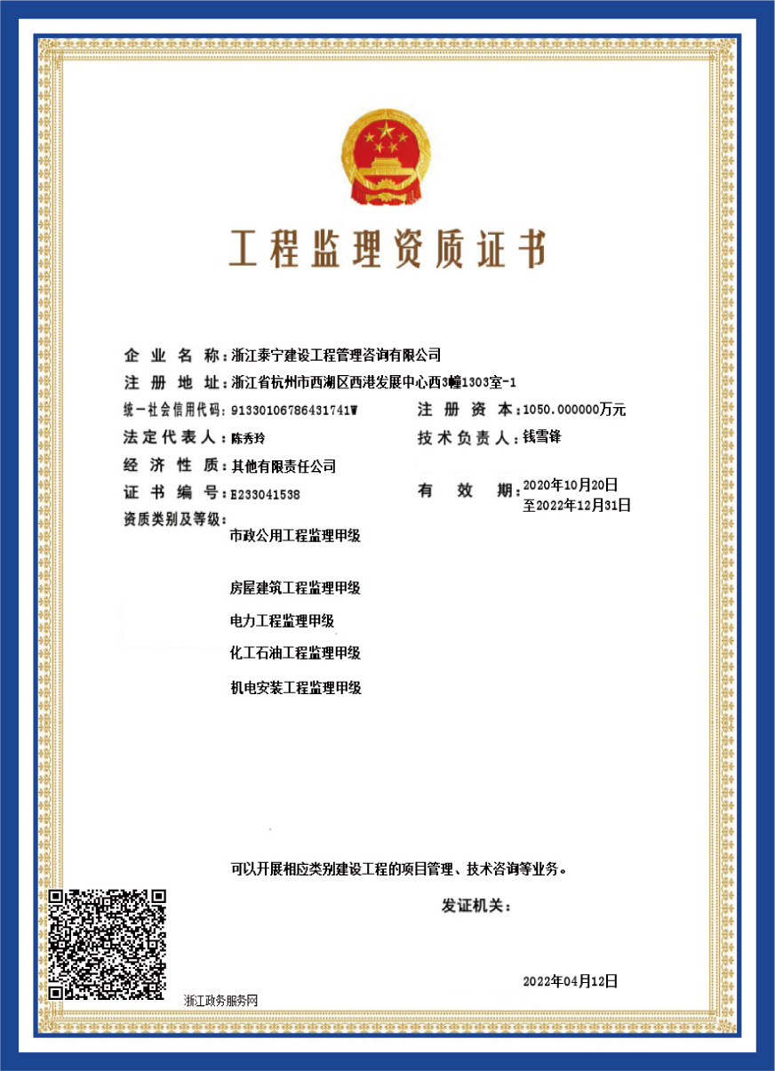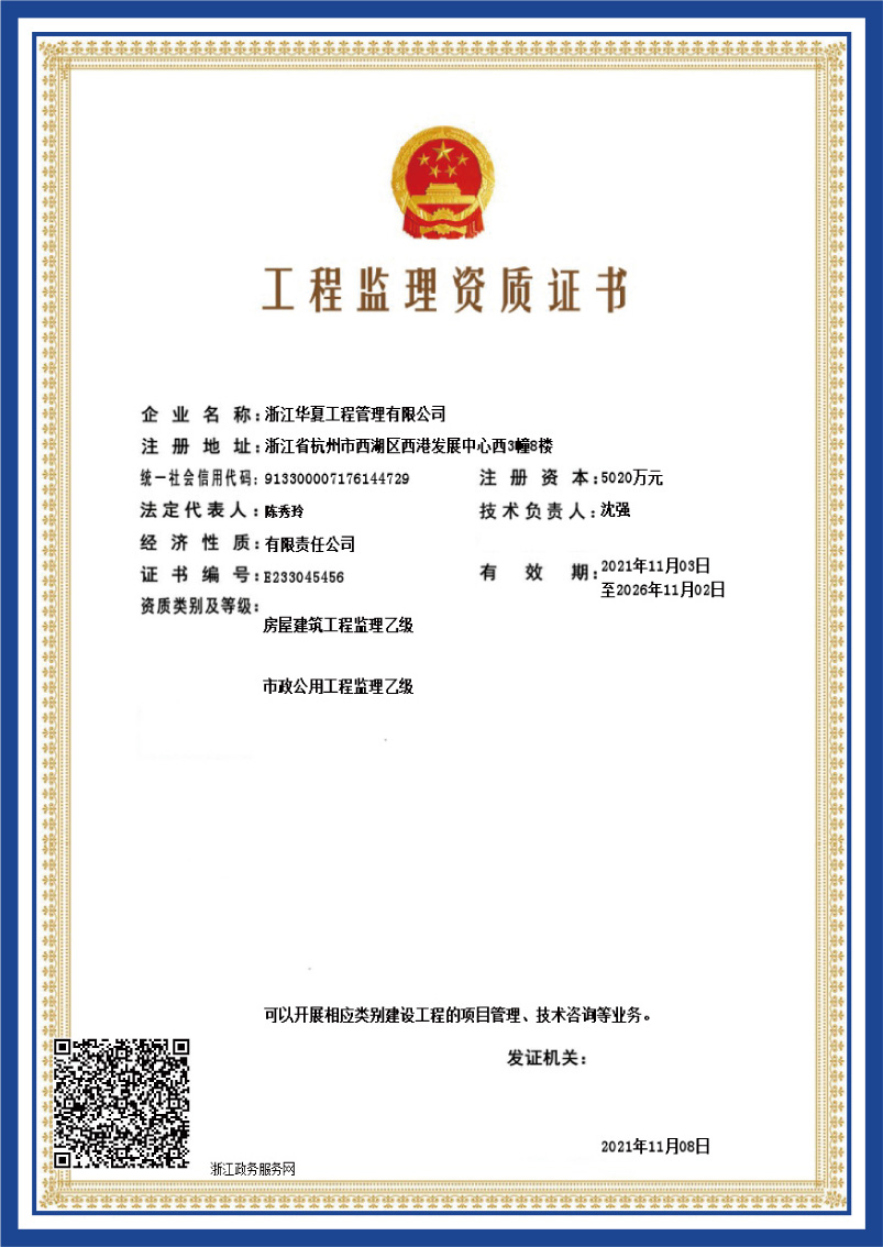 工程監(jiān)理資質(zhì)證書