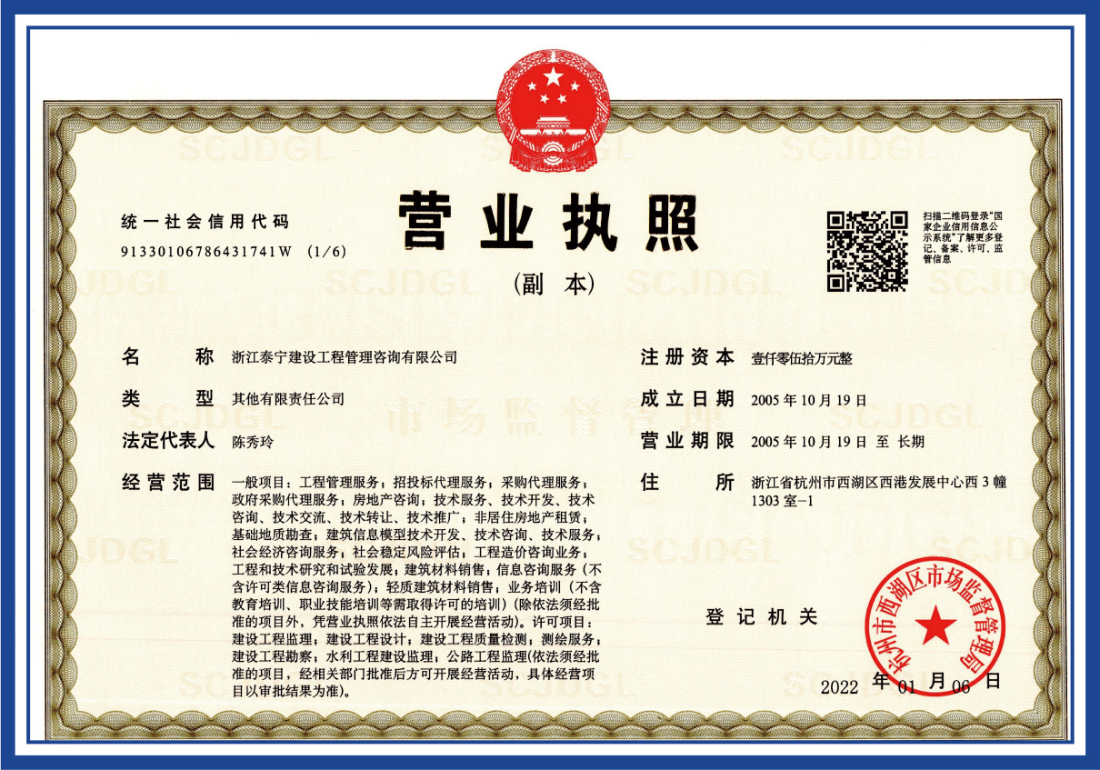 工程造價(jià)咨詢企業(yè)甲級(jí)資質(zhì)證書