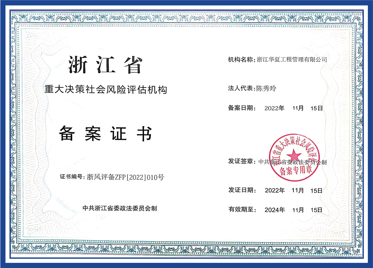浙江省重大決策社會(huì)風(fēng)險(xiǎn)評(píng)估機(jī)構(gòu)備案證書